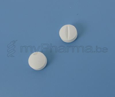 Witte, ronde tablet waarvan de ene zijde een breukstreep heeft en de andere zijde vlak is.